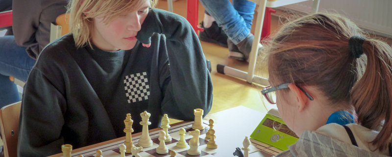 Toller Schachsieg gegen die Realschule Pfullingen Diasporaschüler auch auf Schach-Missionsreise in Mössingen Auf Einladung der „Jena-Plan-Schule“ Mössingen, die eine neue Schach-AG gründeten, fuhren Schachleiter Karlheinz Harrer und einige Schüler nach Mössingen, um dort einen gemeinsamen Schachmittag zu verbringen. Auf einem großen Demonstrationsbrett führte Harrer die interessierten Schüler in die vielfältige Welt des Schachspielens ein. Anschließend durften die Mössinger Schüler mit den Schachmissionaren aus Bietenhausen erste Schachspiele führen.