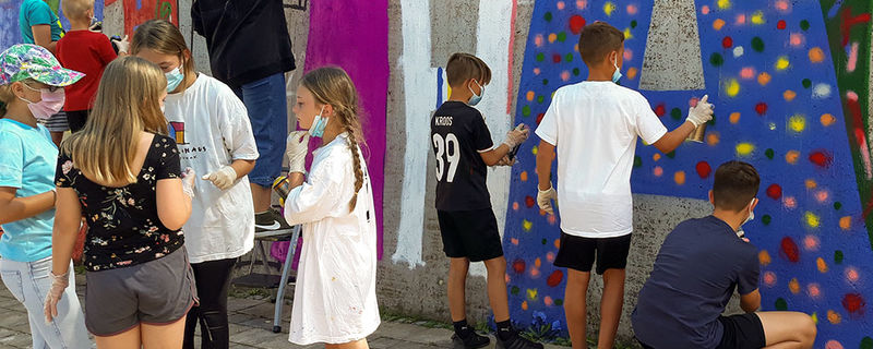 Workshop Die Graffiti-Künstlerin Anika Heimann aus Frommern hat mit 20 Mädchen und Jungen die Wand auf dem Brechplatz in Bietenhausen verschönert. Die Ferienaktion des Lädles kam richtig gut an. Von Melanie Steitz (HZ)