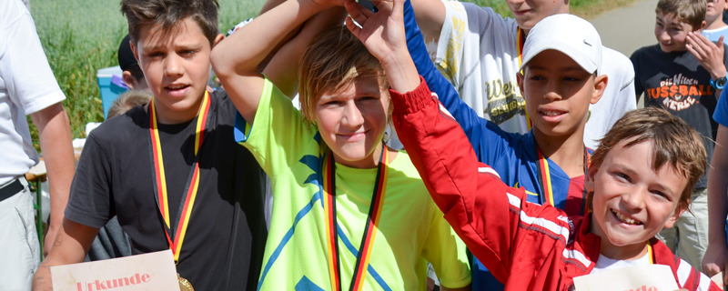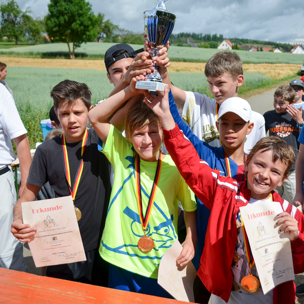 Auch vor dem letzten Wechsel führte das DHB-Team klar und konnte den Vorsprung von drei Minuten bis ins Ziel behaupten. Den Silberrang erliefen sich die tapferen Schüler der Sprachheilschule. Über die Bronzemedaille freuten sich die Läufer der Außenstelle Balingen des Diasporahauses. Einen tollen vierten Platz erliefen sich die Weggentalschüler aus Rottenburg. Aber Verlierer gab es keine, denn das sportliche Motto lautete wie immer olympisch „Die Teilnahme ist wichtiger als der Sieg“. Noch bevor bei manchen Läufern der letzte Schweißtropfen getrocknet war, gab es die feierliche Siegerehrung durch die Vorstandschaft des Diasporahauses. Schulleiter Herr Rein, Verwaltungsleiter Herr Hailfinger und dem Vorstandsvorsitzenden Herr Guzzardo, der aktiv am Rennen teilnahm, ehrten mit anerkennenden Worten alle Läufer. Sie lobten die sportliche faire Atmosphäre und die Leistungsfähigkeit aller Teilnehmer. Alle Teilnehmer wurden mit einer Urkunde dekoriert. Die drei erstplatzierten Staffeln zusätzlich mit Medaillen und das Siegerteam aus Bietenhausen durften den großen Wanderpokal stolz in den Bietenhäuser Himmel recken. Nach der Siegerehrung hieß die Parole aber wie immer: Eis für alle!