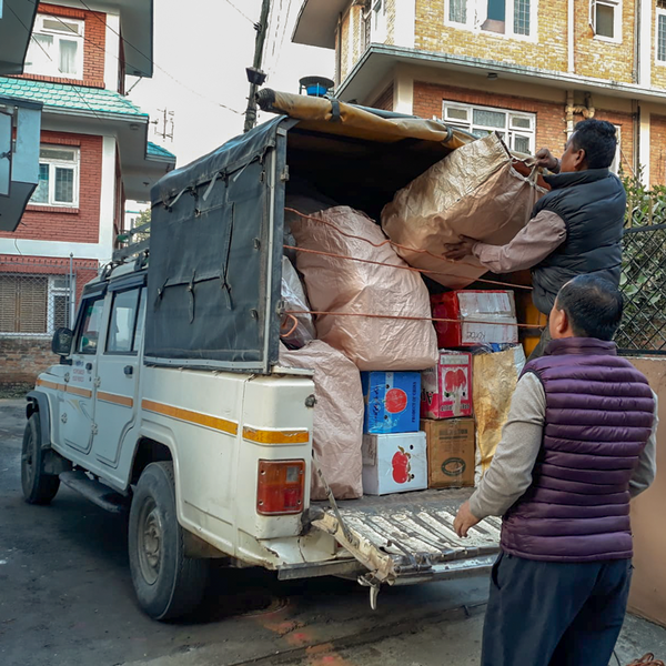 Am Montagmorgen, 19. November 2018, ging es um kurz vor acht los mit dem Beladen des Autos für das Projekt in Lurpung und Dorkapa. Der komplette Kleintransporter war voll mit unseren Rucksäcken, Pullovern und Kartons mit den Kleinmaterialien und natürlich unseren großen Koffern.