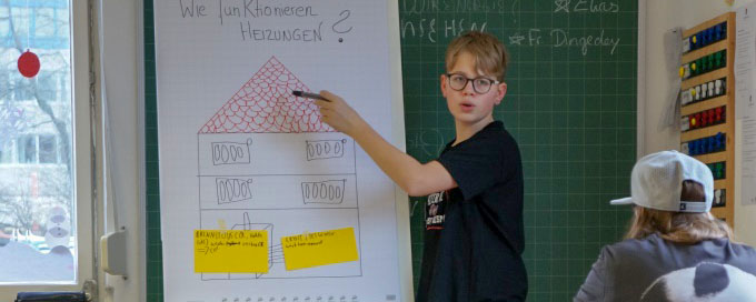 Sie führen in den unteren Klassen, als Dozierende Informationsprojekte durch. Dabei entwickeln sie Ideen für einen verantwortungsbewussten Umgang mit knappen Energieressourcen.