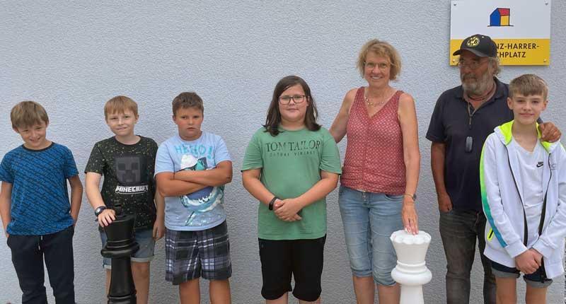 Zum Abschluss ihrer Grundschulzeit wünschte sich die Klasse ein Schachspiel gegen ihre Schulleiterin Marie-Louise Funk auf dem großen Schachplatz an der Schule. Mit großer Freude nahm die Schulleiterin, die das Schachspiel an ihrer Schule sehr fördert, das Spielangebot an. In einer tollen Klassenatmosphäre besprachen die Viertklässler jeden ihrer Züge und erspielten sich schnell einen Positionsvorteil gegen ihre Chefin, die zwar gerne, aber viel zu wenig Schach spielt. Kurz vor dem Ende der Schachstunde setzten die Kinder ihren „Mattzug“.